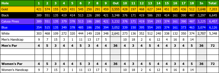 Calusa Pines Golf Club Detailed Scorecard Course Database